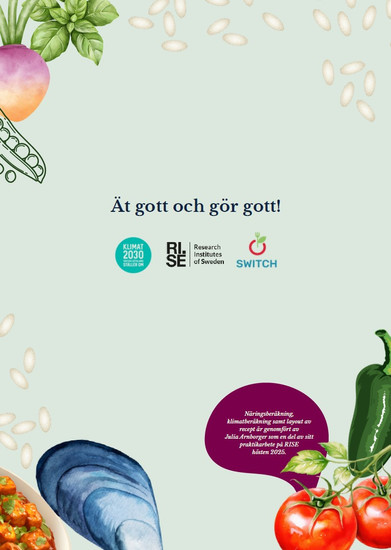 Klimatavtrycket kan med fördel minskas genom att succesivt öka proportionen klimatsmarta råvaror i receptet. Att recepten ska ge mätta magar har varit viktigt i urvalet och för att säkerställa detta är samtliga recept näringsberäknade. Recepten har även klimatberäknats vilket visualiseras med RISE klimatskalor för måltider.